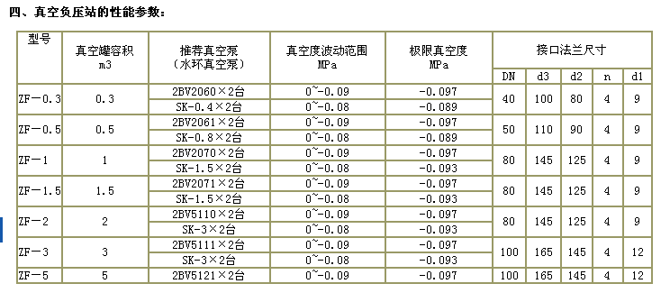 ZF系列真空負壓站(真空發生裝置)是以一臺或二臺水環真空泵作為真空獲得設備,由真空緩沖罐、汽水分離器、換熱器、單向閥、供水電磁閥、球閥、管路、控制柜、真空表、機架等組成以真空罐作為真空存儲設備的成套系統。對于頻繁使用真空源而所需抽氣量不太大的場合下,該系統比直接使用真空泵大大節約了能源,并有效提高了真空泵的使用壽命。