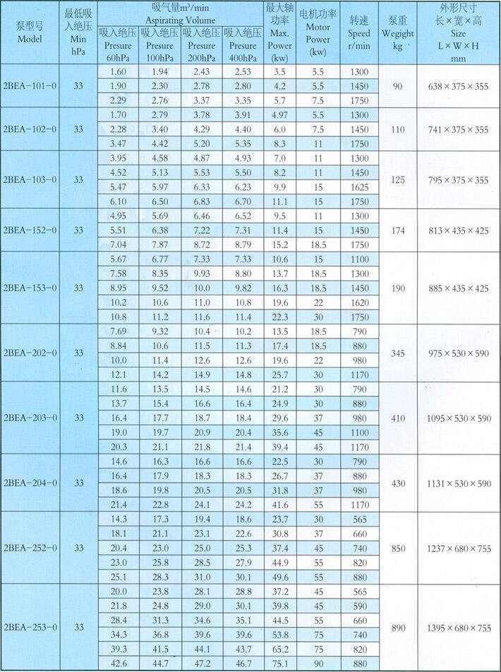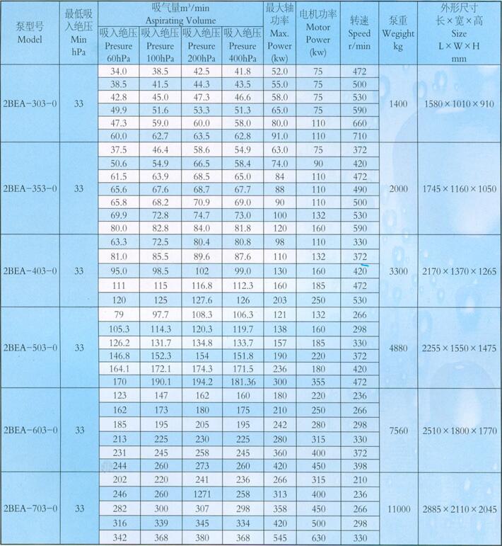 2BEA水環(huán)式真空泵技術(shù)參數(shù):